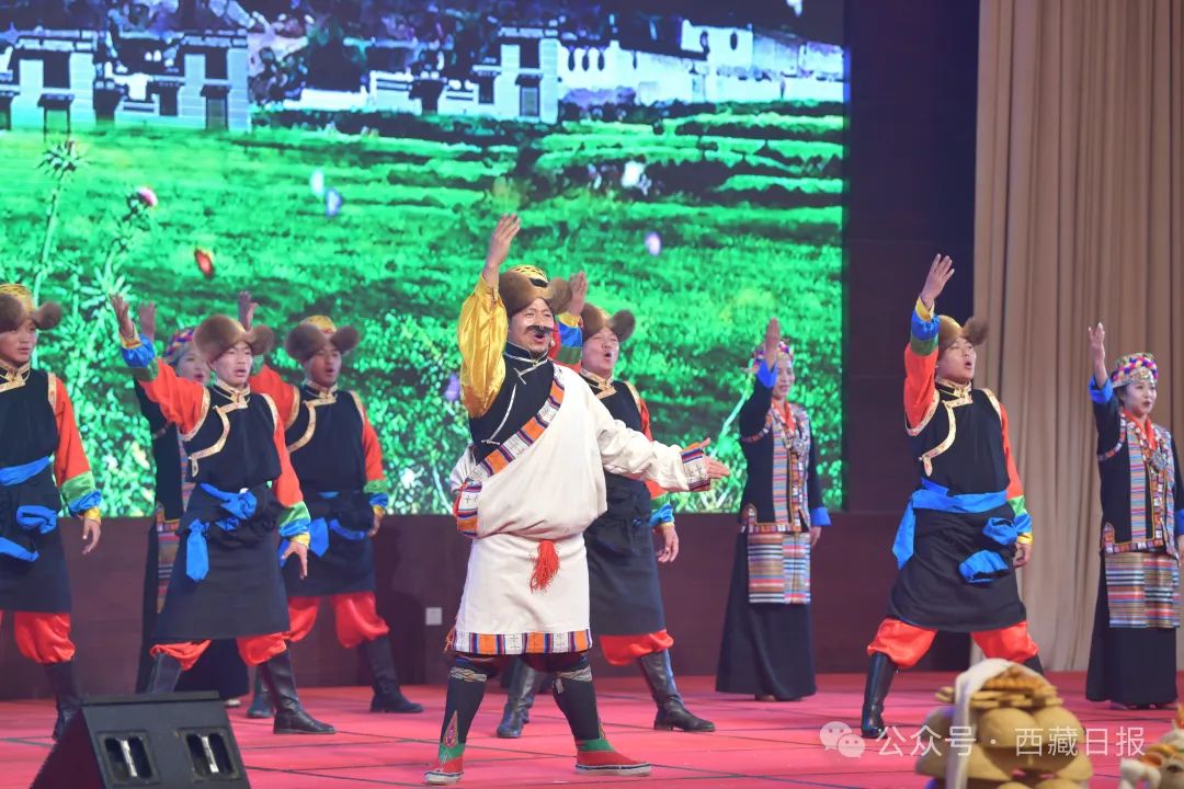 自治区政协委员贡布多杰代表各族各界人士发言。文艺工作者表演了精彩节目。