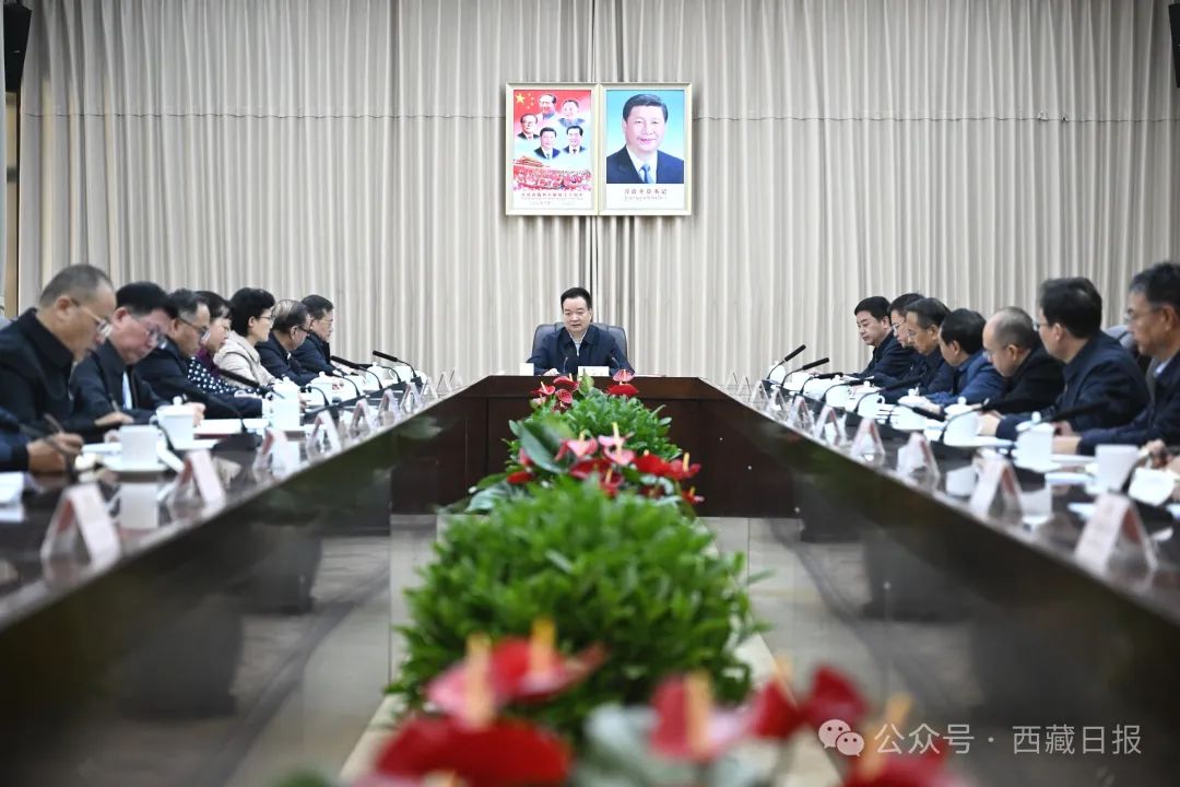 王君正强调,要提高政治站位,坚持以习近平新时代中国特色社会主义思想统揽西藏人大工作全局,不断增强做好新时代人大工作的责任感使命感。深入学习领会习近平总书记关于坚持和完善人民代表大会制度的重要思想,深刻领悟“两个确立”的决定性意义,增强“四个意识”、坚定“四个自信”、做到“两个维护”,坚持党的领导、人民当家作主、依法治国有机统一,健全全过程人民民主制度体系,充分发挥职能作用,为全面建设社会主义现代化新西藏凝聚人心、汇集力量。自治区人大常委会领导班子要带头加强理论武装,带头加强业务学习,带头树立正确政绩观,带头执行民主集中制,带头改进作风、狠抓落实,带头以身作则、严于律己,推动西藏人大工作不断开创新局面。