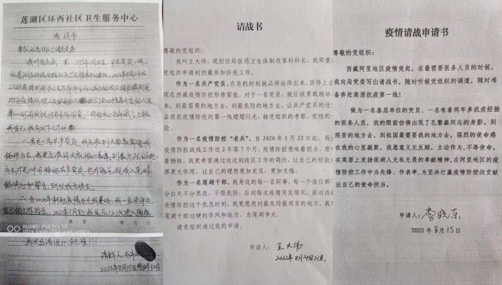 与此同时,一封封《请战书》送到了莲湖区疫情防控指挥部。