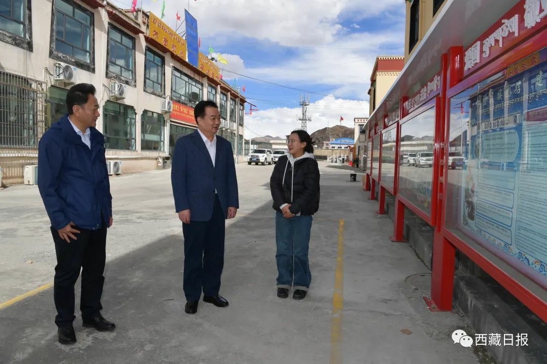 5月3日至4日,王君正在拉萨、林芝督导调研。这是王君正来到日多乡,亲切看望值班工作人员,通过展板了解基层各项工作开展情况。记者 旦增西旦 摄