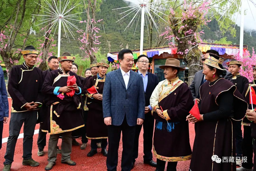 雨后的林芝市巴宜区布久乡远山含黛,近处田园生机盎然。王君正来到这里,认真考察基层党建引领乡村振兴、发展特色产业等工作,详细询问布久乡群众经营收入、家庭生活等情况,深入了解基层社会治理体系和治理能力现代化等工作。“讲党恩、爱核心,讲团结、爱祖国,讲贡献、爱家园,讲文明、爱生活……”布久乡杰麦村“两委”班子成员和村民们身着节日盛装、手擎五星红旗,唱出了美好新生活的喜悦之情。王君正走进村民中间,与他们一一握手。王君正勉励干部、党员带头为群众干好事、实事,带领群众在振兴乡村的道路上共同致富。王君正强调,要深入学习贯彻党的二十大精神,进一步解放思想、奋发进取,立足本地实际,激发动力活力,持续壮大乡村经济,确保经济当前有活力、未来有潜力。要把产业振兴作为乡村振兴的基础和关键,因地制宜发展特色种养、农产品精深加工、休闲农业、农村电商等新产业新业态,形成产业发展新增长极,打造乡村发展新优势,推动巩固脱贫攻坚成果上台阶、乡村全面振兴见实效。要大力实施乡村建设行动,整治提升农村人居环境,健全完善基础设施,加快建设宜居宜业和美乡村。在西藏天禾啤酒有限公司,王君正详细了解产品生产流程、工艺特点,鼓励企业坚持以市场需求为导向,积极引入新理念、新技术、新工艺,做大做强“藏字头”品牌,不断激发高原特色产业发展动力和潜能。