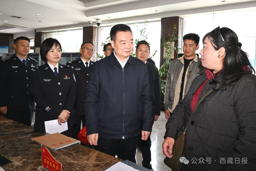 在出入境管理总队、网安总队,王君正同公安干警亲切交流,仔细询问前来办事的群众相关业务办理情况,详细了解我区出入境管理服务等工作。他强调,要不断深化公安政务服务窗口标准化、规范化、智能化建设,更新理念、优化措施,让公安政务服务有“速度”更有“温度”。旅行社及其从业人员要不断提高自身专业素养和服务意识,做好入境旅游接待,让世界更好了解西藏、让西藏更快走向世界。