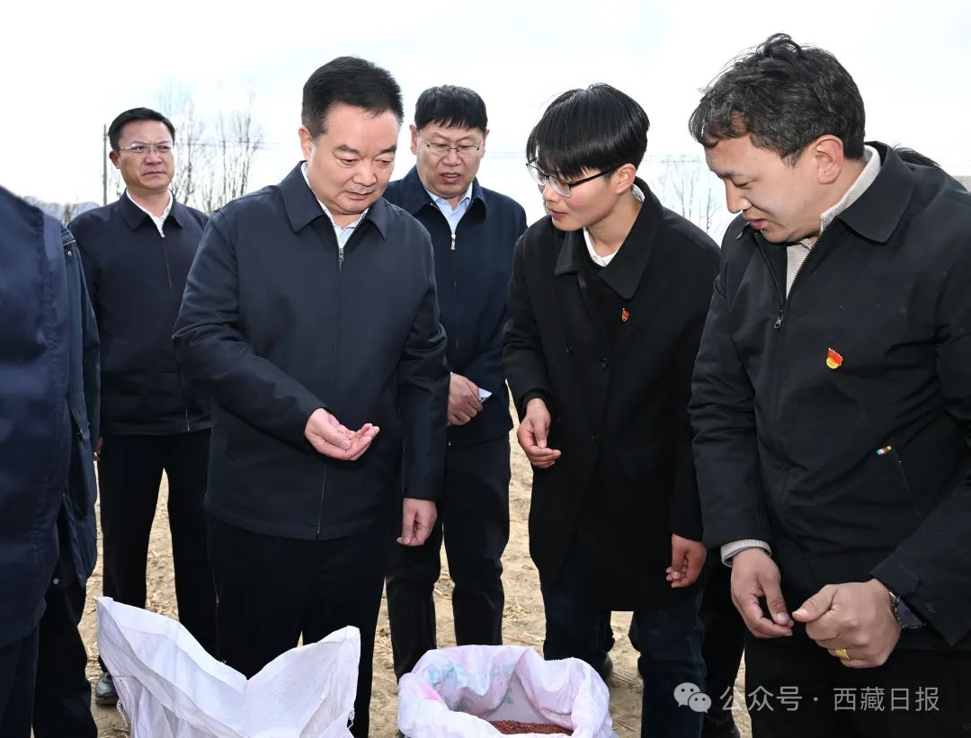 正值春耕农忙时节,在达孜区塔杰乡巴嘎雪村,农用机械正在忙碌作业。王君正走进田间地头,实地察看春耕春播情况,与基层干部群众深入交流。“一亩地的种植成本是多少?”“良种成活率是多少?”“农业机械化普及率达到什么水平?”王君正边看边问,叮嘱当地要抢抓农时高质量开展春耕春播,推进良田、良种、良机、良法、良制“五良”融合发展,为全年农业丰收开好头。塔杰乡塔捷平措农机种植农民专业合作社通过构建现代农业生产经营模式带动农户增收,王君正来到合作社,详细询问发展规模、市场拓展等情况,希望他们不断提升合作社专业化、规范化水平,强化农业科技推广应用,普及使用现代化农机农具,拓展市场业务,提高工作效率,不断壮大村集体经济,持续完善联农富农机制,让农牧民群众通过农业科技应用和产业发展增加更多收入、获得更大收益。